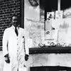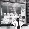 Erhardt Kirkegaard Andersen foran broderens butik, Greve Strandvej 154