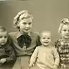 Tove Margrethe Lausten, datter af Caroline Lausten og Viggo Lausten, med børnene Lars, Birthe og Lene, børn af Karoline og Alvin E.B.M. Kristensen