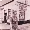 Gertrud Horst foran forretningen.