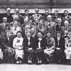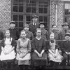 Lærer Oudrup ved Alminde skole i skolegården med sine elever fra 4. klasse i 1923.