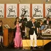 T.v. redaktør Lars Gregers Hansen, t.h. direktør Erik Nielsen Krans nedlægges ved Mindeplade i indgangen