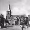 Nicolai Plads, Sct. Nicolai Kirke set fra Kirkestræde.