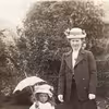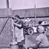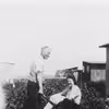 Nancy Sebbelin / Præstemosen / Skelkær / Svigerfar Frederik Otto Sebbelin kører Nancy i trillebør efter våd frokost hos svigerforældre / 1944
