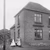 Nybyggeri på Egholmsvej, fortovet er skredet ned. Egholmsvej nr. 14, 16 og 16 A