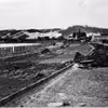 Europavej med Valutaslangen i baggrunden. Banespor løber langs husene. Matr.nr. 1y