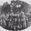 Frk. R. Karmarks Børnehave, Hans Tausens Gade 13, Odense. Børnene, frk. Karmark og en voksen mere er opstillet til fotografering, antagelig uden for i Børnehaven.