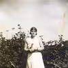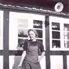 Katharina Stauning, gift med Edmund, foran huset på Strøbyvej 29.