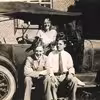Foto af Henry, Edmund og Katharina foran deres bil.