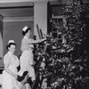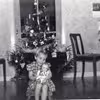 Margit Jensen, Tolne, med dukke foran juletræ.