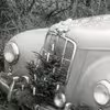 En kreativ bilejer, har pyntet sit kølegitter, på bilen, med et juletræ, ca 1970.