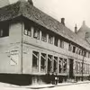 Chr. Junchers Klædefabrik og udsalg i Slotsgade 1-3. Facaden ud mod Østervold og Slotsgade