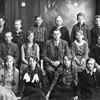 Pastor Tuxen med et hold konfirmander foran Skive kirke i 1914