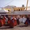 Regentparret ser folkedans fra Dannebrog i Vejle Havn, 2. juli 1991
