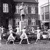 De nyuddannede sygeplejersker danser omkring Drewsens statue på Torvet.