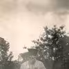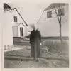 Cecilie Jeppesen ved hjørnet af svigersønnen Hassing Kjølbys hus på Aalborgvej (nu Gugvej) i Gug. Hertil flyttede hun sammen med datteren Anna og Kjølby i 1930. | B124 Billeder
