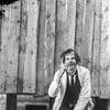 Mand med løftet finger ved plankeværk.