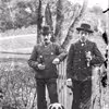 To mænd med hat og lange piber og hund.