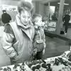Julemarked i Middelfart 1996. En julemand uddeler karameller til ukendte børn med forældre.