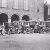 Rutebiler og hyrevogne foran Kolding Rådhus