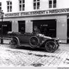 Folmer Trap og Julius Mikkelsen i biler i gården bag Nordbanevej 1, (Cort Trap garage), 1913.
