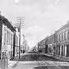 Gade- og butiksliv, Østerågade, set mod Limfjorden, med Kongensgade og Nytorv til højre.