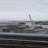 Nakskov by set fra Plutteøen, i baggrunden M/S Mjølner og havnebygningen