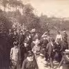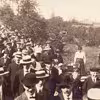 Vejlskoven. Demonstration mod Jægermesterinden på Rathlousdal, pga forbud mod at færdes i skoven. Forrest t.h. Th. Møller, Erik Danielsen, E. Caster.