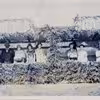 Rathlousdal. Udgravning i Godsted mose på Lolland. Fra v. lærer Godsted, skovrider Schrøder, skipper Enevold Sørensen, ..., siddende hofjægermester Holstein Rathlou.