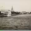 Frederikshavn med Kirken i baggrunden og restauranten sejlklubben set fra vandsiden