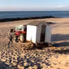 Badehusene køres til Stranden, Lønstrup.
