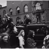 Frihedkæmpere på ladet af en lastbil, omgivet af glade mennesker på Flakhaven 5. maj 1945.