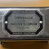 Sparebøsse fra Sparekassen for Hadsten og Omegn, Østergade 3, Hadsten.