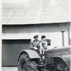 Sigurd Mogensen på traktor med ukendt dreng på gårdspladsen på Mogensens gård