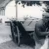 Ole Svendsen trækker sin skråvogn ud fra gårdspladsen, Aalborgvej 243, Holtet, Gandrup.