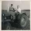 Aksel Brøndum ved rattet på traktoren og Niels Brøndum siddende på skærmen.