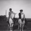 Ukendt person med 2 heste.