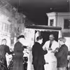 Pølsemanden Martin Skovbo i sin pølsevogn ved siden af Rådhuset