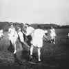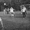 Fodboldkamp ml. unge piger og ældre mænd i Ølufvad sommer 1947.