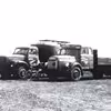 Vognmand Børge Lambertsens lastbiler på marken bag Brugsen i Gærum, 1967-1968.