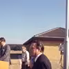 Borgmester Børge Jensen og bankdirektør Hans Lund taler ved byggeudstilling i Skovparken
