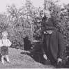Skovbakken 3. Købmand Aksel Poulsen og damefrisør Ingeborg Poulsen i haven. Ca. 1935.
