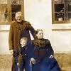 Portræt af Christian Poulsen og hustru Maren Poulsen med barnebarnet Peder Villads Nielsen