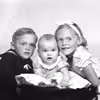 Dåbsbillede Martha Ravnborg med Lene, Anni og Henning, Hoby Skov,Gloslunde. 4983 Dannemare