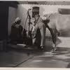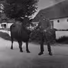 Brugsuddeler Wagner Sigaard og kommis Jens Larsen i butikken i Lille Skensved Brugsforening