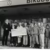 Peter Bjørn Nielsen, Bikuben Tommerup afd. overrækker en check til 6.x Brylle Skole.