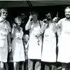Grundejerforeningen Greve Strandby. 5 personer med Carlsberg-forklæder og -øl. Gruppefoto