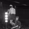 Entertaineren Bubber som sprechstallmeister i Cirkus Arena omgivet klovne fra cirkus