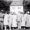 Fru Brian foran Villa "Rolighed", Hattenæs.