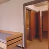 Rønshave Plejehjem, Padborgvej 20, Bov, opført af Rudebeck & Wortmann, interiør i en lejlighed med seng i stuen og entre og adgang til toilet.