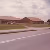 Rønshave Plejehjem, Padborgvej 20, Bov, opført af Rudebeck & Wortmann, set fra øst mod vest. Billedet er taget fra den gamle jernbanesti mellem Padborg og Smedeby.